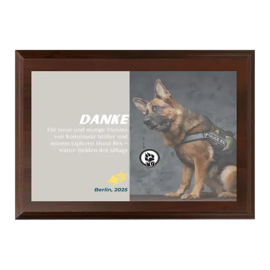 Diplom HG255 je vyroben z kvalitního dřeva a zlacená destička uprostřed vytváří prostor pro váš jedinečný design. – na diplom můžete umístit libovolnou fotografii, grafiku, logo firmy nebo události a přizpůsobit jej konkrétní slavnosti. Barevný vzor uprostřed je pouze vizuální příklad – ve skutečnosti je tato oblast zcela k dispozici pro vaše nápady.