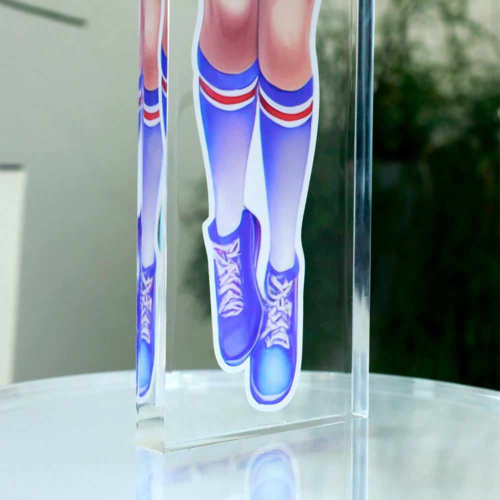 Velkoformátová akrylátová trofej zdobená barevným UV potiskem znázorňujícím roztleskávačku. Její výjimečný design a moderní provedení ji odlišují od ostatních ocenění.