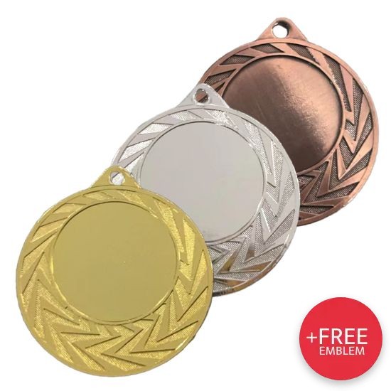 Medaile MMC0240 je vyrobena z vysoce kvalitní oceli, což zaručuje její odolnost a elegantní vzhled. Má jemné geometrické zdobení kolem střední části, která zůstává hladká a připravená na umístění emblému. Medaile je dostupná ve třech klasických barvách: zlatá, stříbrná a bronzová, což umožňuje ocenit vítěze podle standardní hierarchie umístění. Díky preciznímu zpracování a univerzálnímu designu působí medaile profesionálně a atraktivně na každé slavnosti.