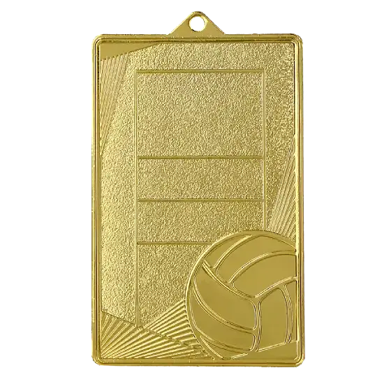 Medaile je vyrobena z odolného kovu a její obdélníkový tvar znázorňuje volejbalové hřiště v minimalistické, elegantní podobě. V pravém dolním rohu je také volejbalový míč.