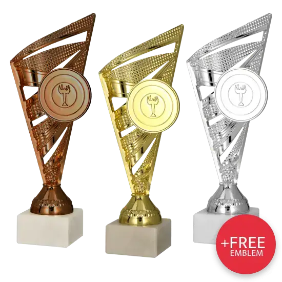 Pohár 8381 je k dispozici ve třech barevných variantách: zlaté, stříbrné a bronzové. Díky tomu je snadné vytvořit klasickou sadu ocenění pro vítěze 1., 2. a 3. místa. Každá barva symbolizuje jinou úroveň úspěchu, takže pohár se skvěle hodí pro sportovní soutěže, umělecké soutěže i různé plebiscity. Kombinace všech tří barev umožňuje vytvořit vizuálně atraktivní a jednotný rámec celé akce.