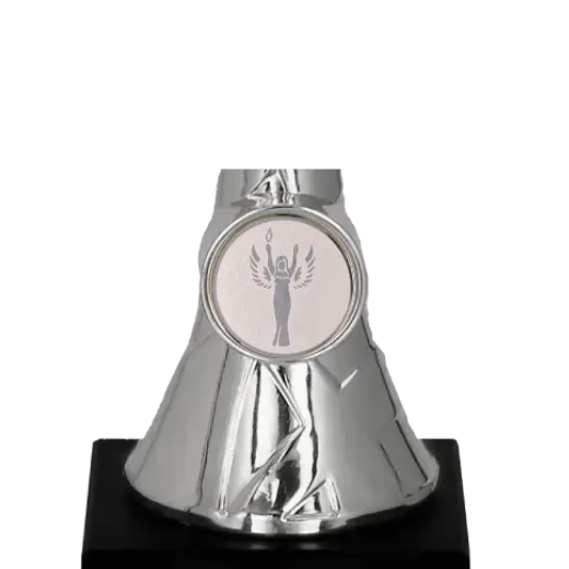 Na štíhlé noze je připraveno místo pro emblém, kde lze umístit symbol spojený s akcí, sportem nebo logem pořadatele. Odolná základna z černého mramoru podtrhuje eleganci poháru, zajišťuje stabilitu a vytváří nezapomenutelný vizuální efekt na mnoho let.