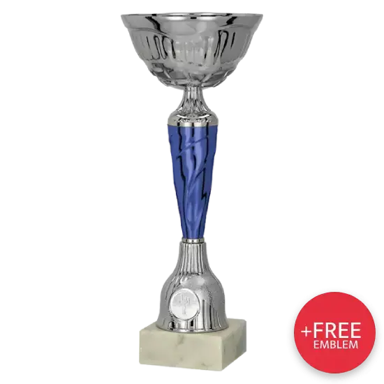 Tento model kombinuje klasický tvar poháru s moderním, jemným modrým akcentem, který upoutá pozornost. Stříbrný kalich symbolizuje úspěch a mramorová podstava dodává nadčasovou eleganci. Klasické poháry se hodí jak na velké galavečery, tak na menší události, vždy působí efektně.