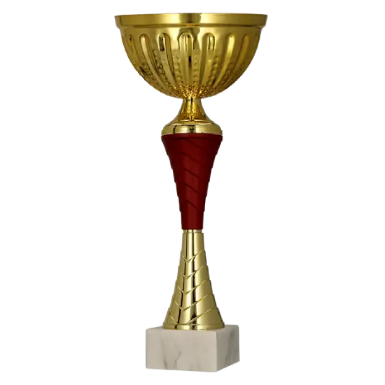 Pohár 9272 kombinuje klasiku, eleganci a možnost individuálního přizpůsobení. Zlatý lesk, červený akcent a mramorový podstavec zajišťují, že ocenění působí velkolepě a podtrhuje význam každého vítězství.