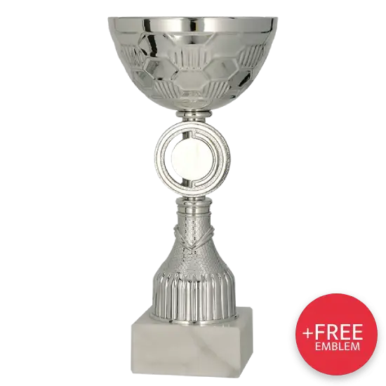Tento model vyniká velkým metalickým kalichem, zdobeným geometrickými vzory inspirovanými strukturou pláství medu. Takové provedení dodává poháru moderní a vizuálně atraktivní vzhled. Zdobená stopka harmonicky doplňuje celek a dodává mu prestižní charakter. Stabilní světlá mramorová základna poskytuje nejen pevnou oporu, ale také prostor pro individuální gravírování.