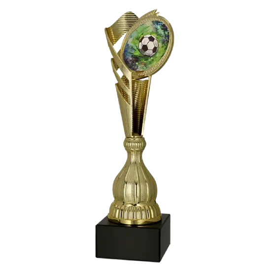 Tento fotbalový pohár je vyroben z odolného plastu pokrytého lesklou zlatou úpravou, která mu dodává eleganci a přitahuje pohledy. Co však tento model odlišuje od ostatních sportovních pohárů, je prolamovaná konstrukce těla – lehká a zároveň stabilní.