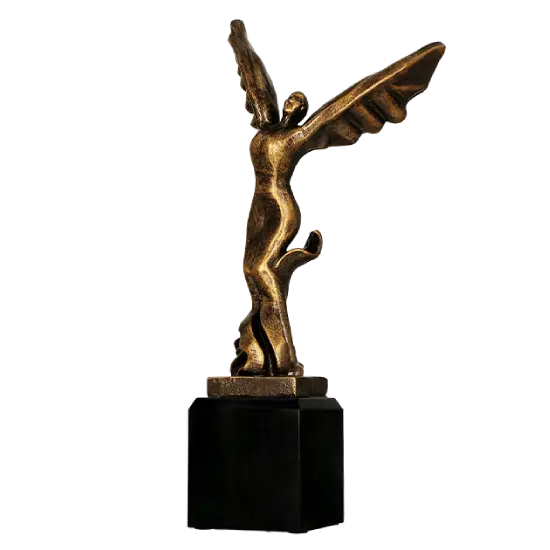 Soška byla vytvořena s mimořádnou pečlivostí o detaily – jemně ztvárněná rozpjatá křídla a štíhlá silueta postavy ji činí impozantní. Metalické bronzové provedení jí propůjčuje elegantní charakter, díky čemuž je toto ocenění vhodné pro mnoho příležitostí.