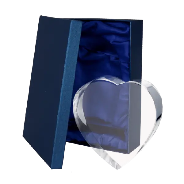 Sklo je atraktivní, ale zároveň náročný materiál, který vyžaduje zkušenosti a speciální technologii zpracování. My se nebojíme výzev a vyrábíme skleněné trofeje v různých provedeních. Jedním z nich je okouzlující trofej ve tvaru srdce. Přidáním potisku a darováním osobě, na které vám záleží – vašemu partnerovi, rodičům nebo prarodičům – ji můžete zcela personalizovat. Krásná trofej se bude hrdě vyjímat na čestném místě a takové gesto bude jistě oceněno. K trofeji navíc obdržíte i odpovídající dárkovou krabičku.