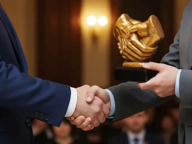 Soška nebo pohár s motivem podání ruky je velmi univerzální forma ocenění. Skvěle se hodí například jako: